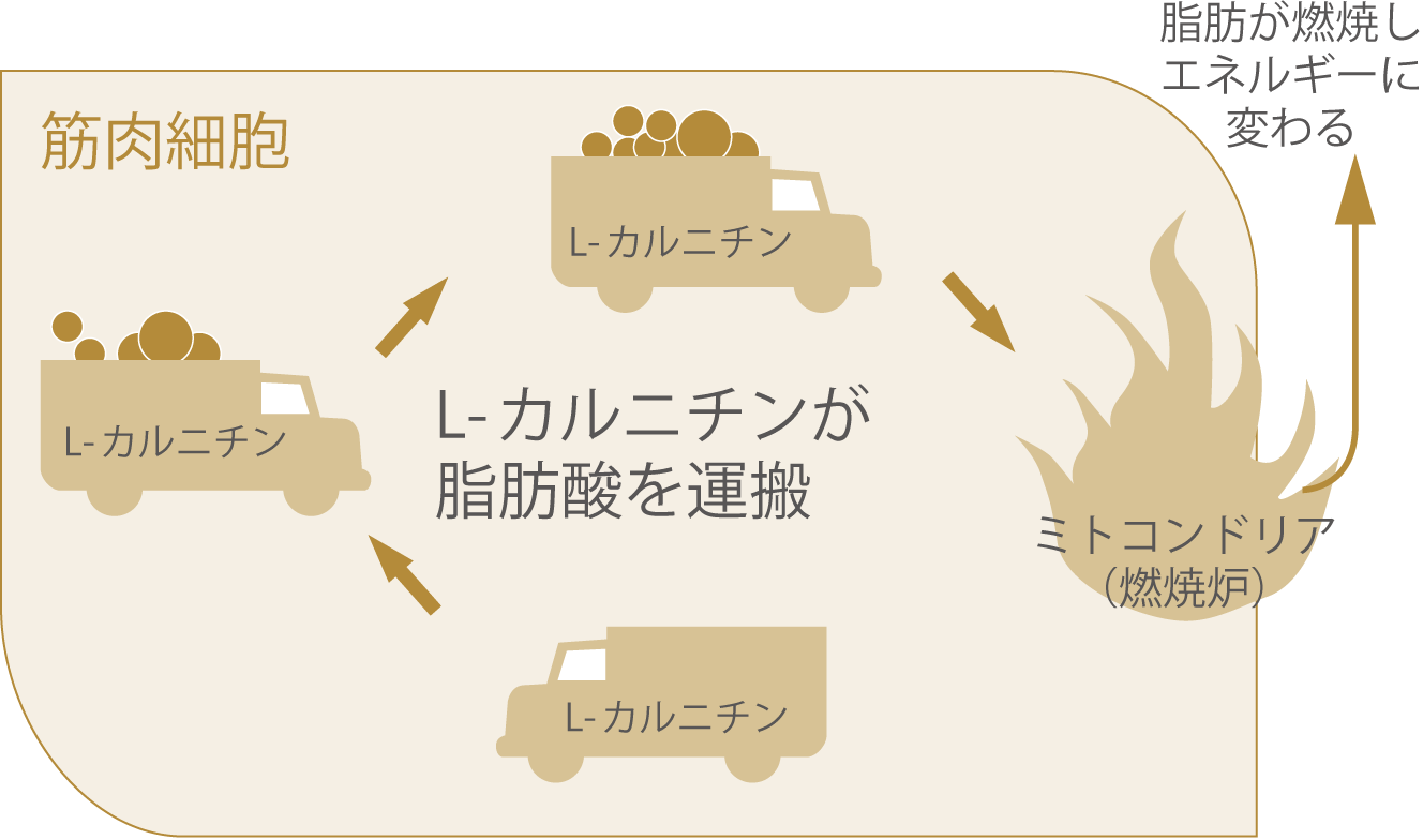 L-カルニチン(LC)は、筋肉細胞(主に「骨格筋」や「心筋」)に多く存在しており、脂質の代謝に必要不可欠な物質です。
